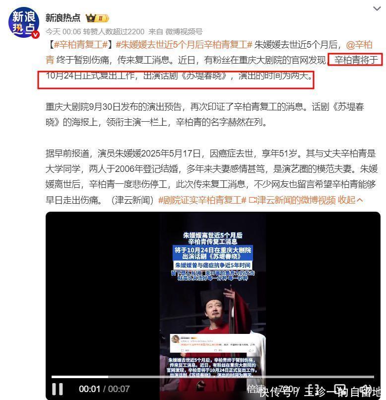 作为关注到此事的一员,笔者希望辛柏青积极复工,相信朱媛媛在天之灵,也不希望辛柏青一直沉浸在痛苦之中走不出来。