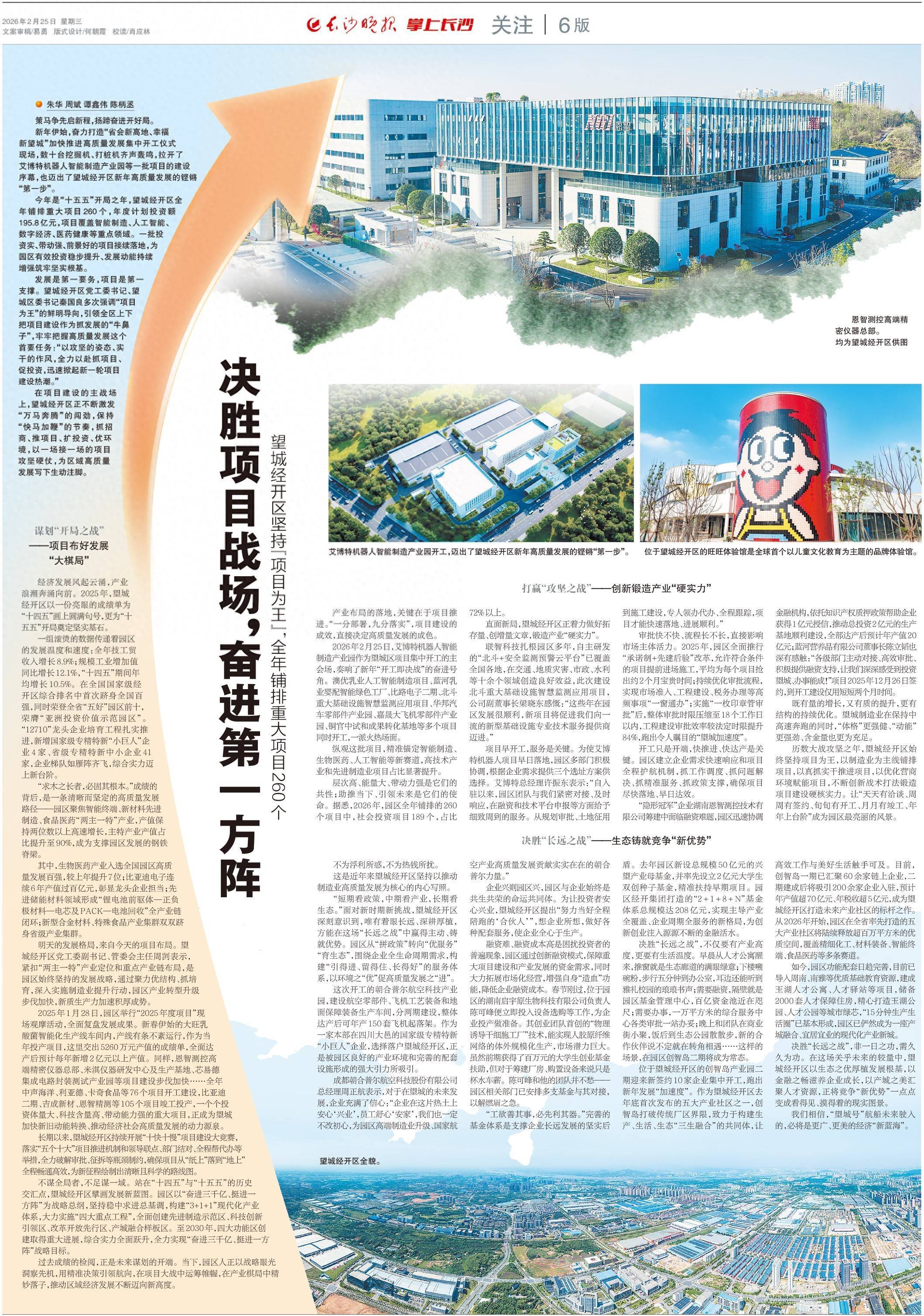 今年是“十五五”开局之年,望城经开区全年铺排重大项目260个,年度计划投资额195.8亿元,项目覆盖智能制造、人工智能、数字经济、医药健康等重点领域。一批投资实、带动强、前景好的项目接续落地,为园区有效投资稳步提升、发展动能持续增强筑牢坚实根基。